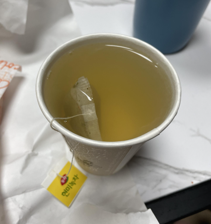 맛은 일단 '꿀녹차'부터 말씀드리면 이게 신기한 게 분명 동서 벌꿀 같아 보이는 튜브형 꿀을 뜨거운 물에 휘휘 돌러 넣고 마찬가지로 동서 녹차로 보이는 티백을 넣은 후에 긴~ 티스푼으로 여러 차례 저어서 주셨는데... 정말 희한하게 맛있었습니다. 입맛이 까다로운 와이파이님도 마셔보더니 '너무 달다'라고 하면서 물 좀 더 넣으면 맛있겠다 라고 하며 절반 정도 마시고 집에 가져가서 물 넣고 나머지도 다 마셨습니다. 이건 어렵지도 않고 한번 해서 먹어봐야겠습니다.