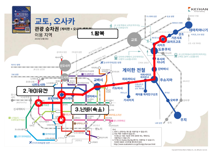 하지만 아쉽게도 게이한 패스 + 오사카 메트로 1DAY 패스는 두 회사가 합작으로 만들어낸 상품이라 간사히 공항이 아닌 게이한선 주요 역에서 교환을 할 수 있습니다.