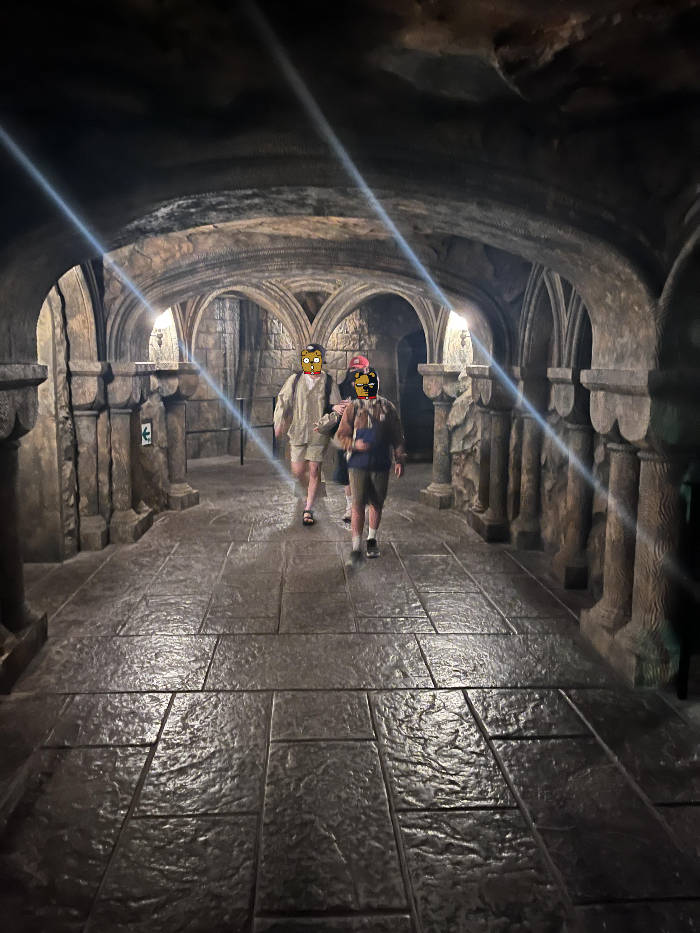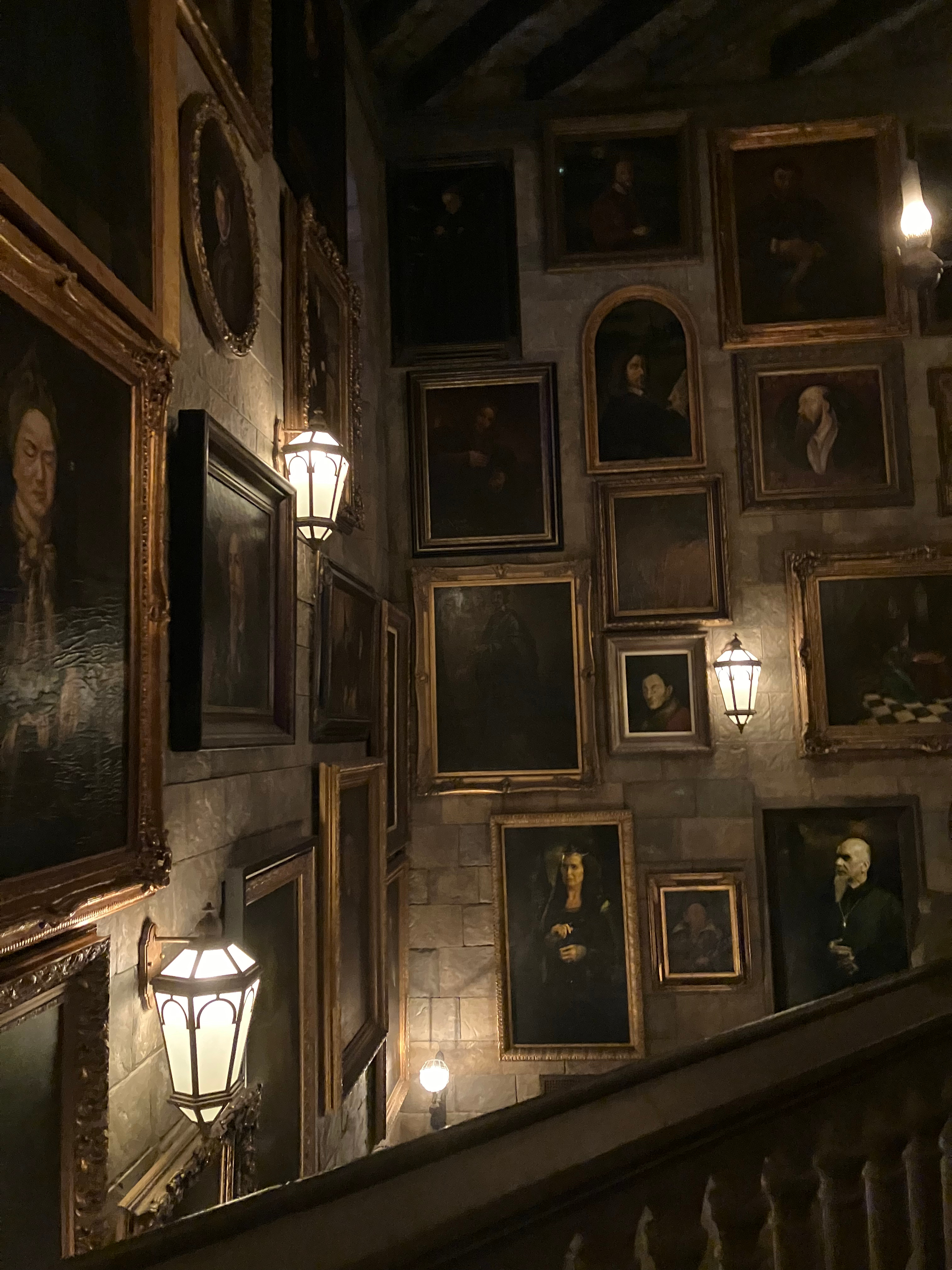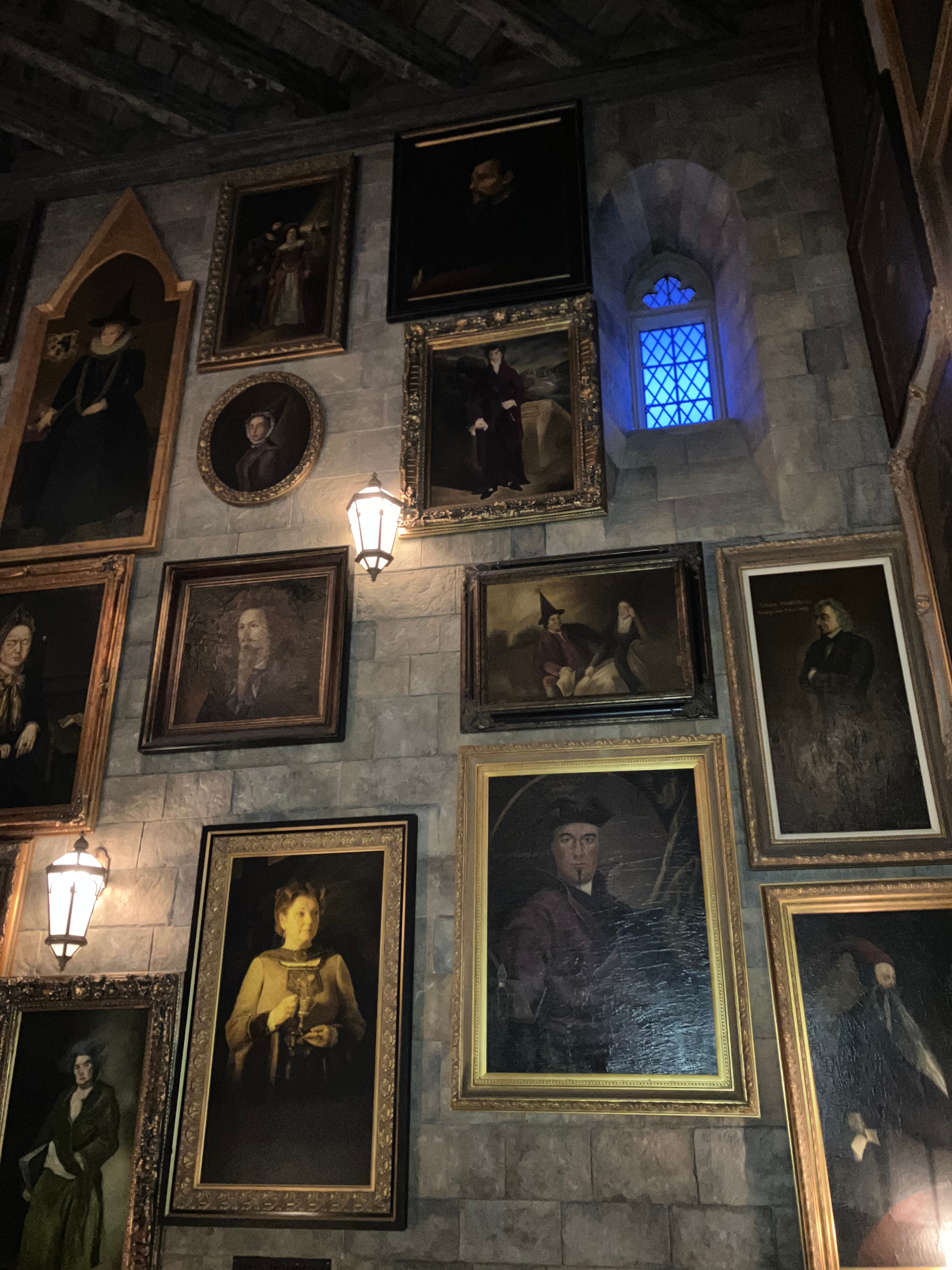 들어가는 길에는 해리포터 영화에서 보던 초상화들이 전시되어 있었고, 일본어로 대사를 하는 소리가 들렸습니다. 탑승 경험은 정말 재미있었고, 8~9년 전에는 타지 못했던 해리포터를 결국 탑승할 수 있어서 매우 기뻤습니다.