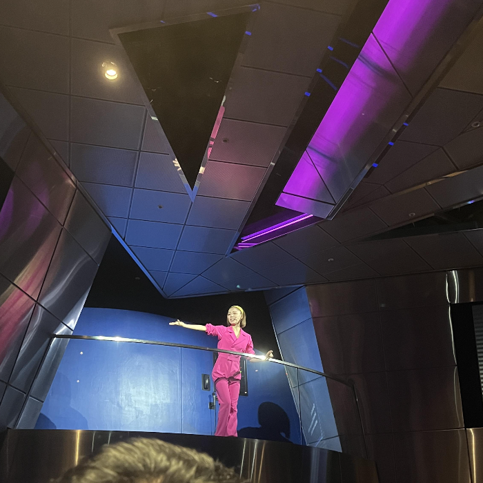 '귀멸의 칼날 XR 라이드'는 기대를 뛰어넘는 경험이었습니다. 입구에서는 탄지로가 등장해 탑승객들에게 간단한 설명을 해줍니다. 이어서 으슥한 복도를 지나며 4D 안경을 받았고, 마침내 열차에 탑승했습니다.