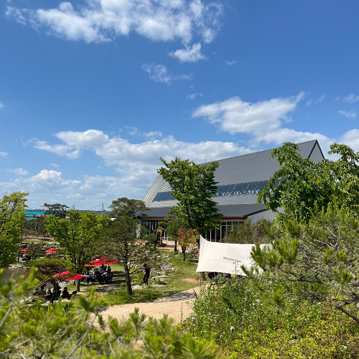 지난해 방문했을 때는 야외 테이블들이 캠핑 사이트처럼 배치되어 있었지만, 이번에는 타프가 추가되어 더욱 캠핑 분위기가 나는 테이블들이 많이 있었습니다. 가운데 호수를 바라보는 구조로 여러 벤치들이 배치되어 있었고, 그늘막도 설치되어 있었습니다.